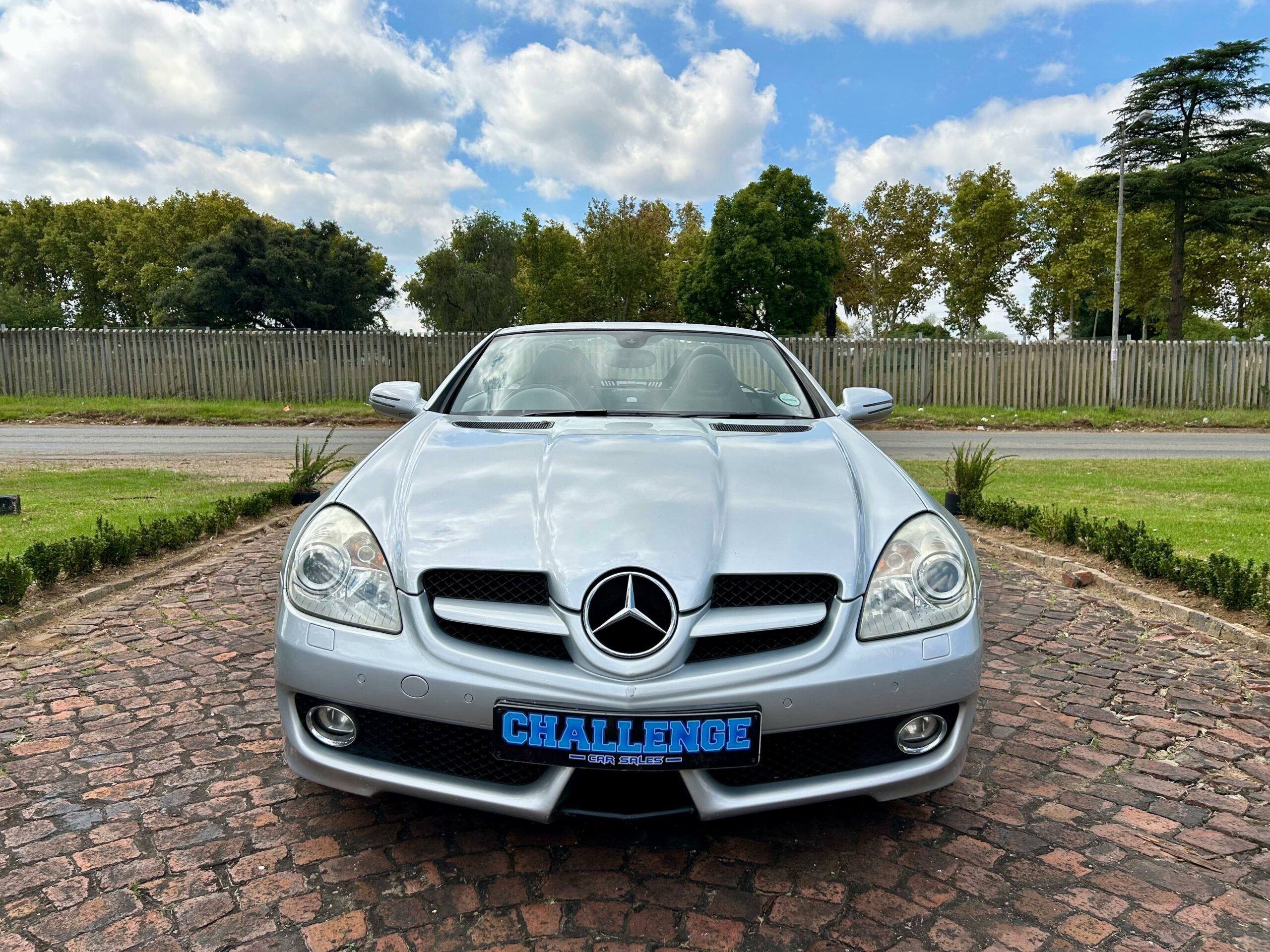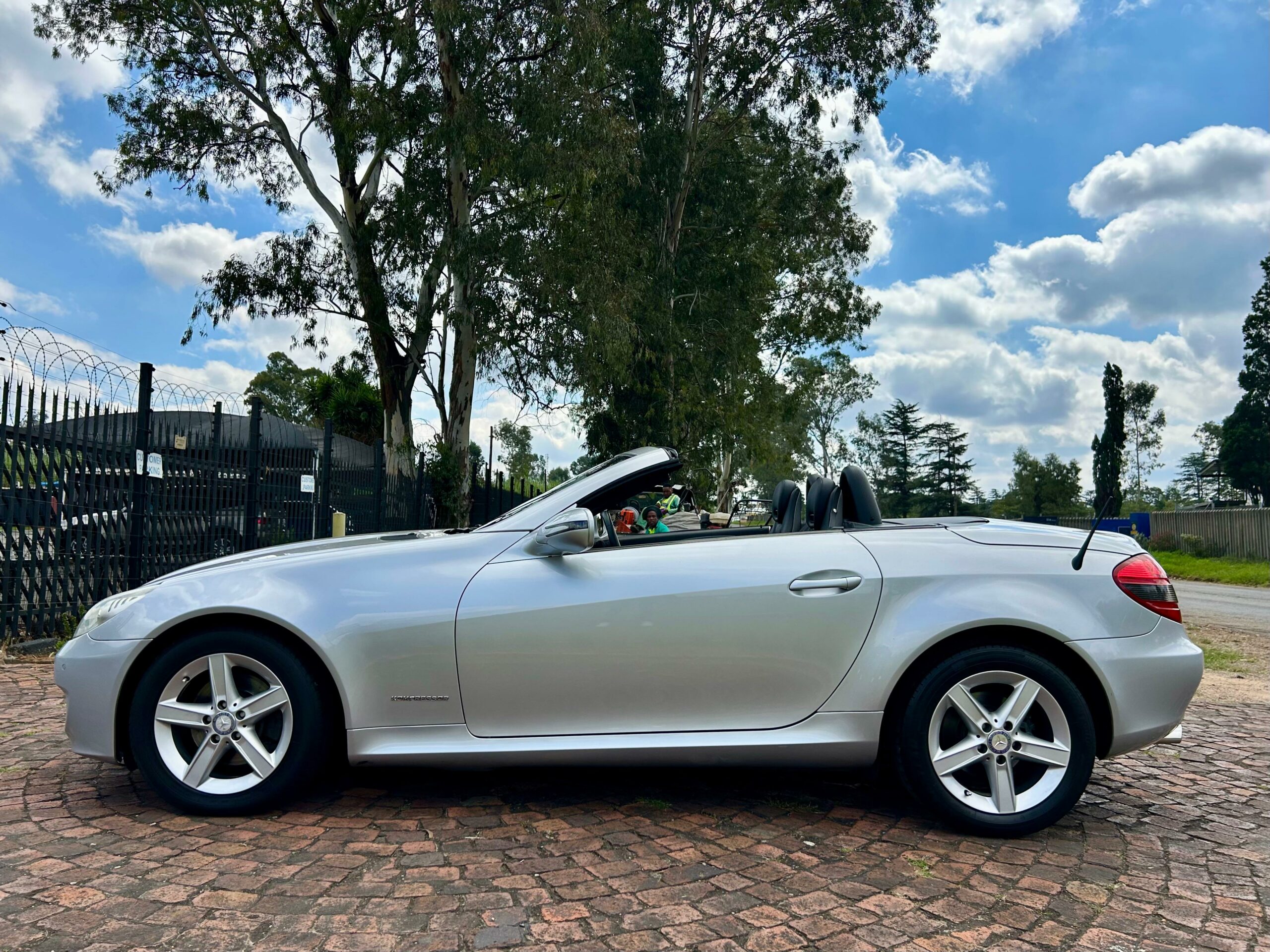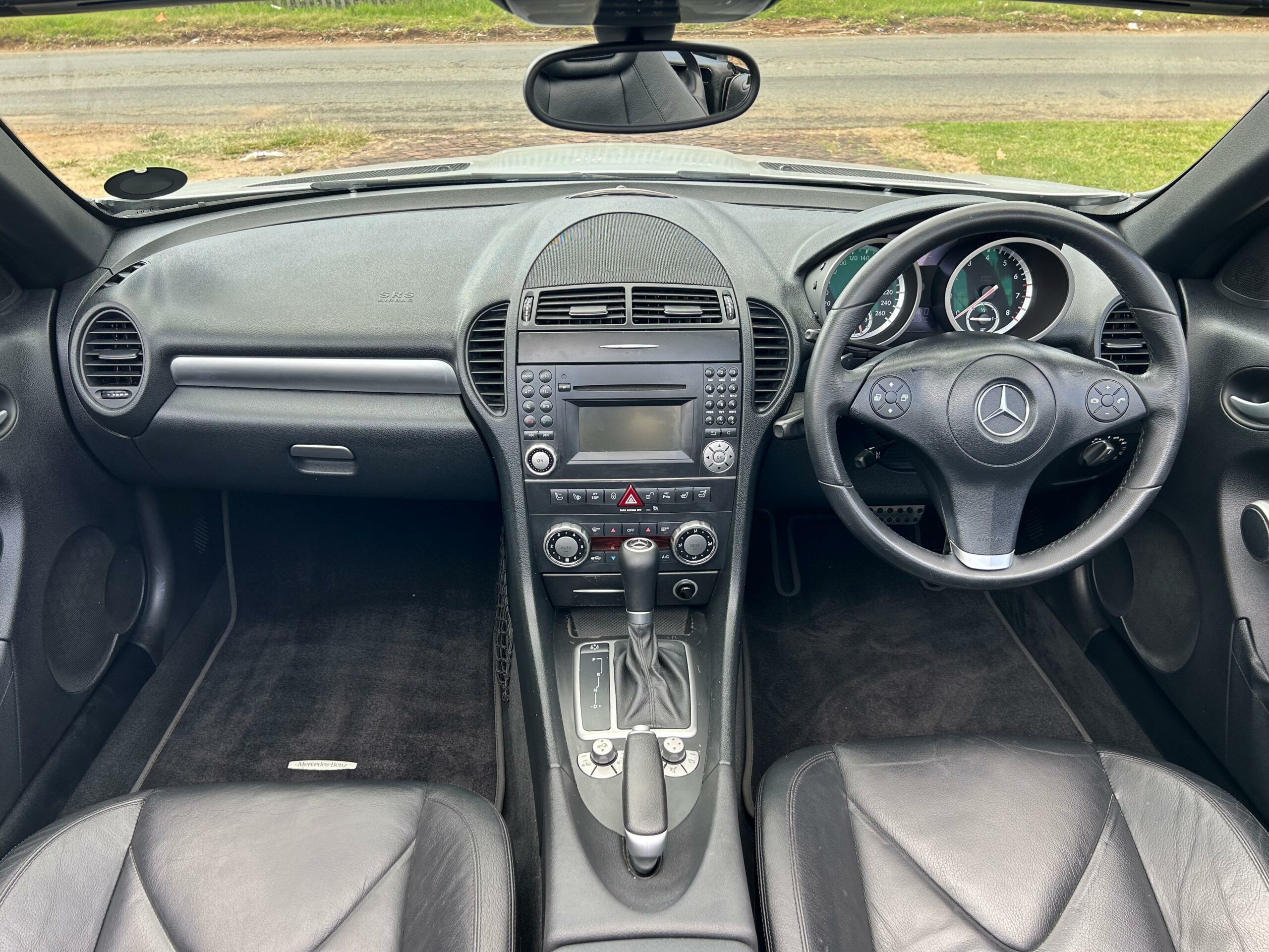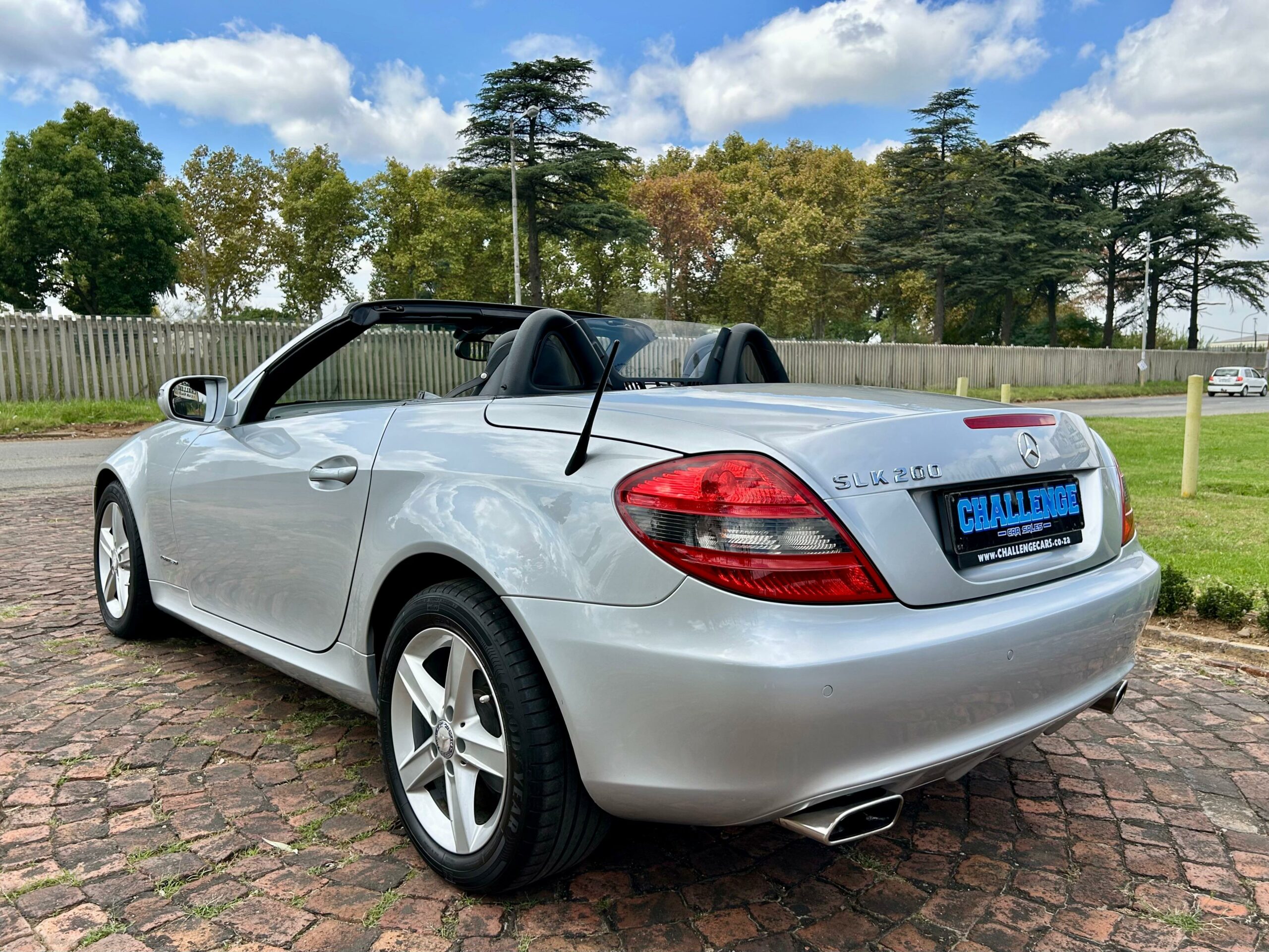 2008 Iridium Silver Mercedes-Benz SLK200 Kompressor. Loaded with ABS, airbags, aircon, electric windows, electric folding mirrors, black leather interior, heated headrests, electric heated seats, automatic xenon lights, fog lights, electric steering wheel adjustment, front and rear parking distance sensors, multi-functional power steering, paddle shift, cruise control, front loader radio with phone connectivity, central locking, service history and spare key.