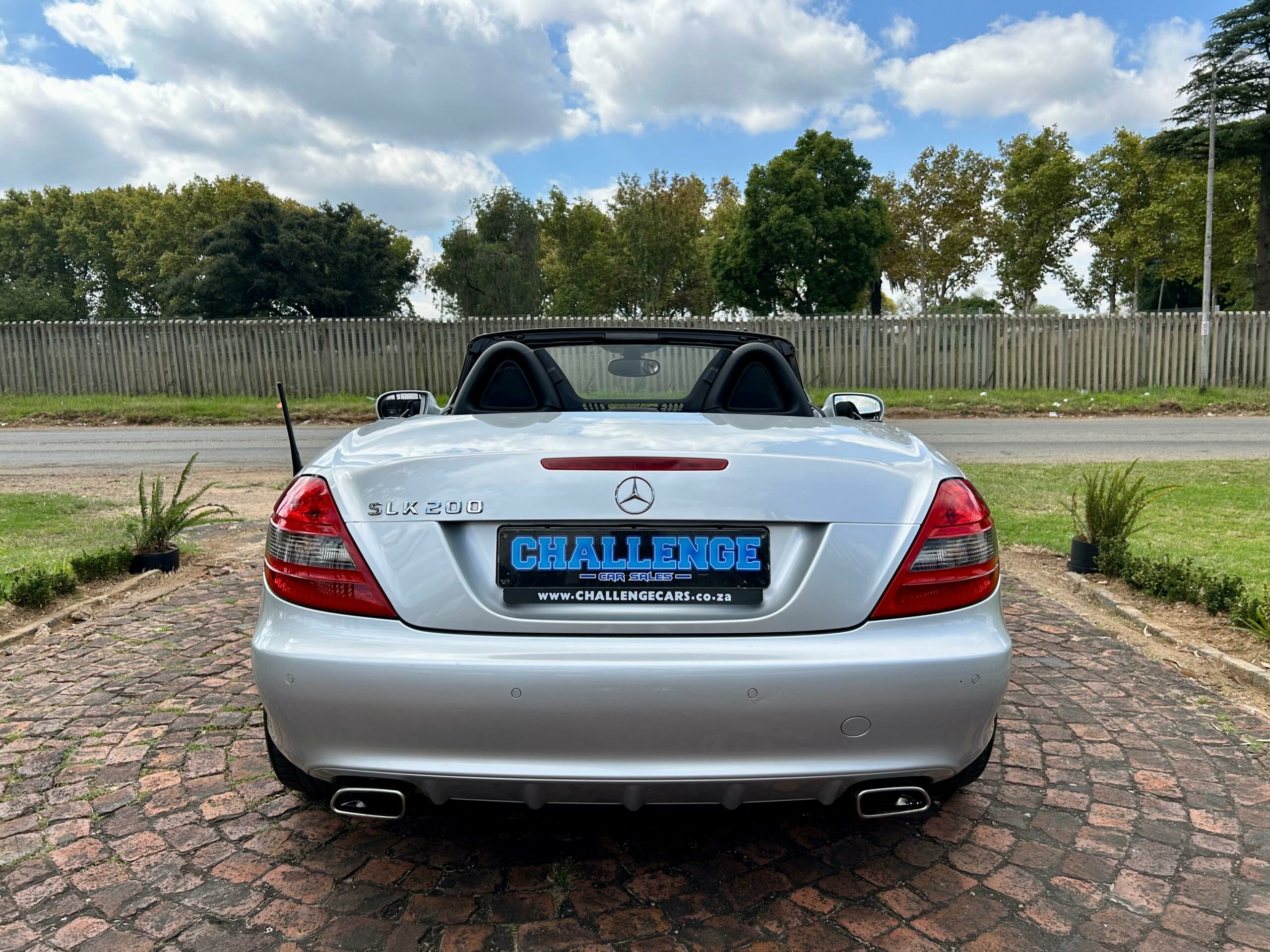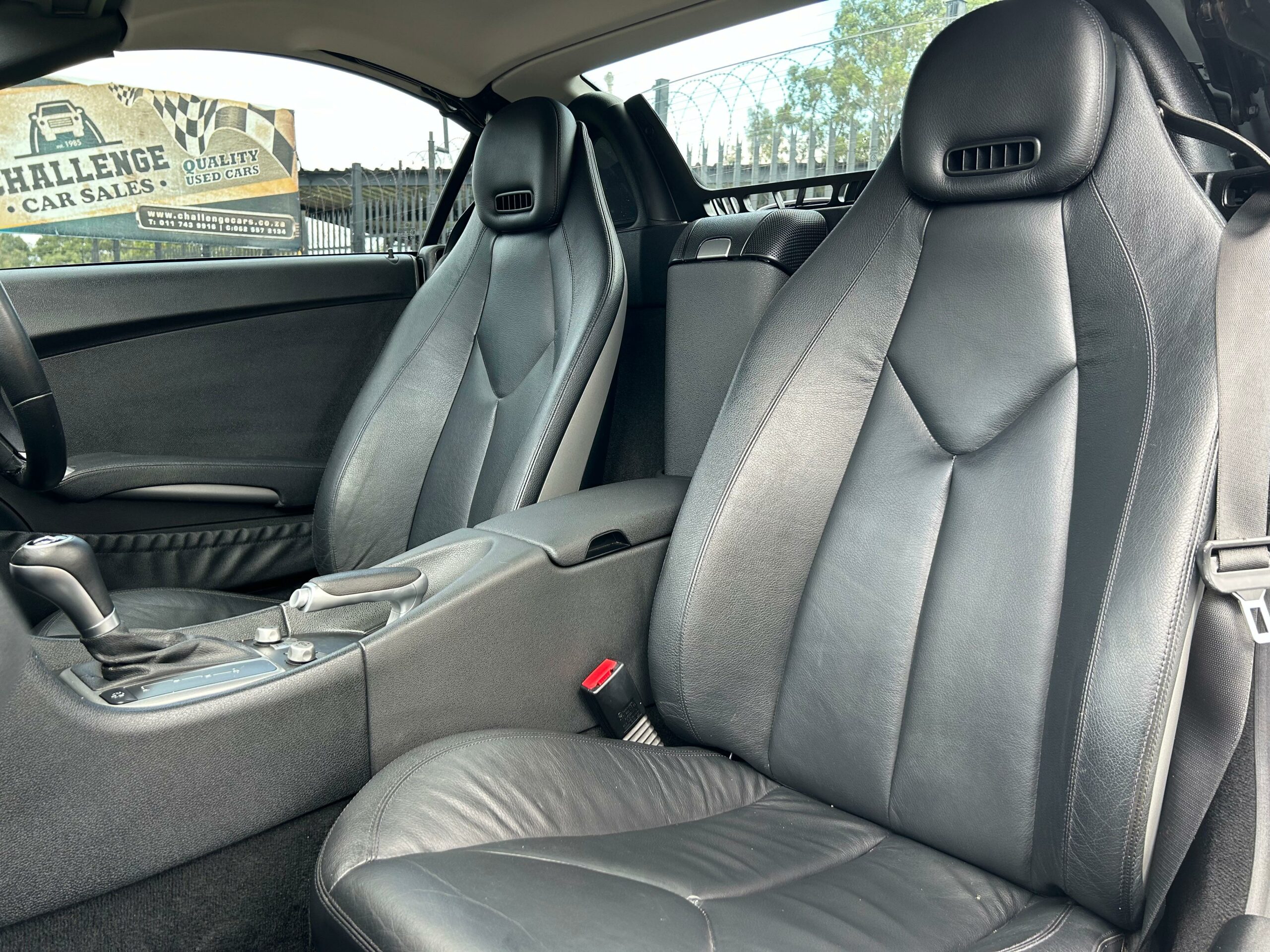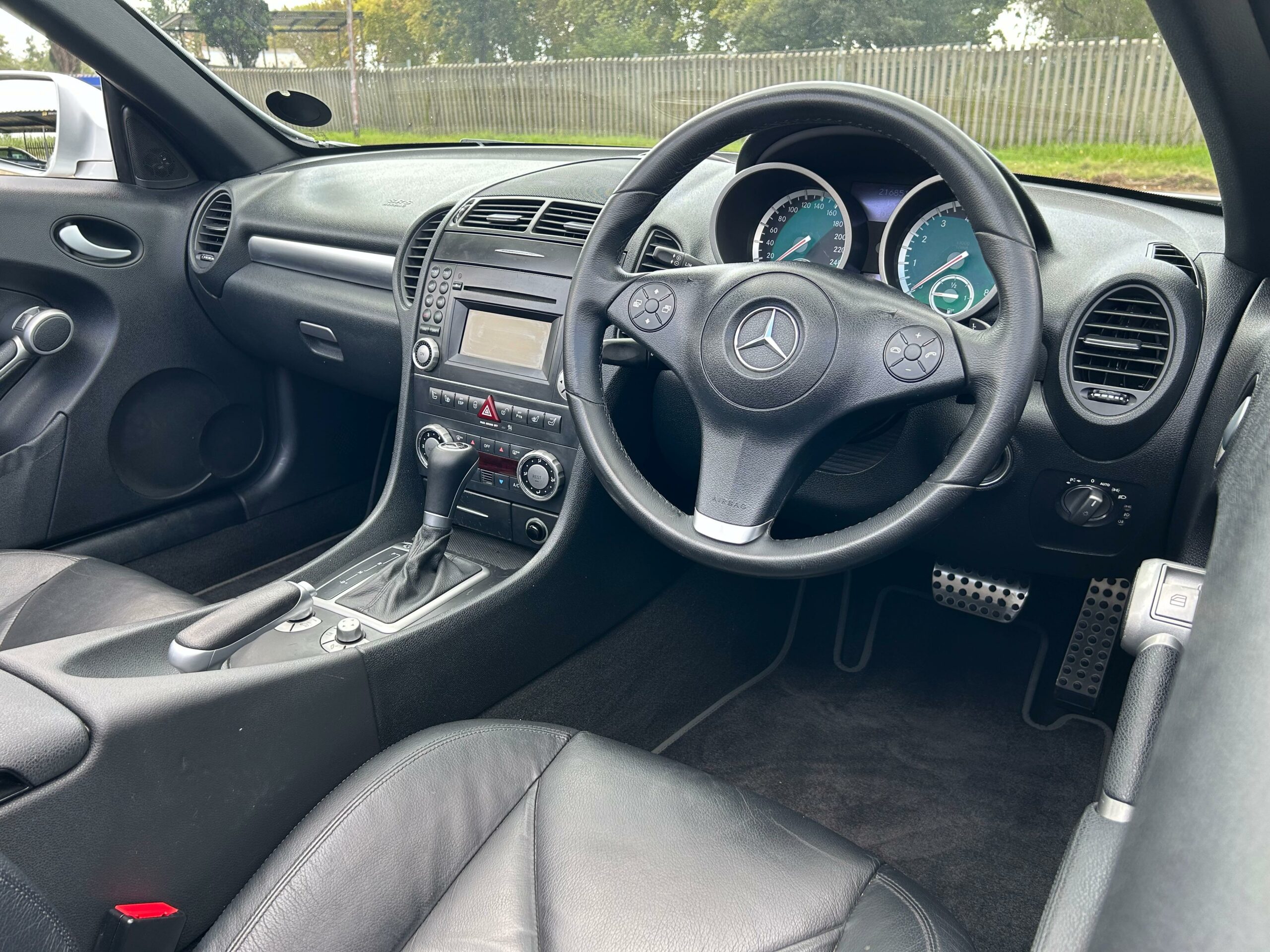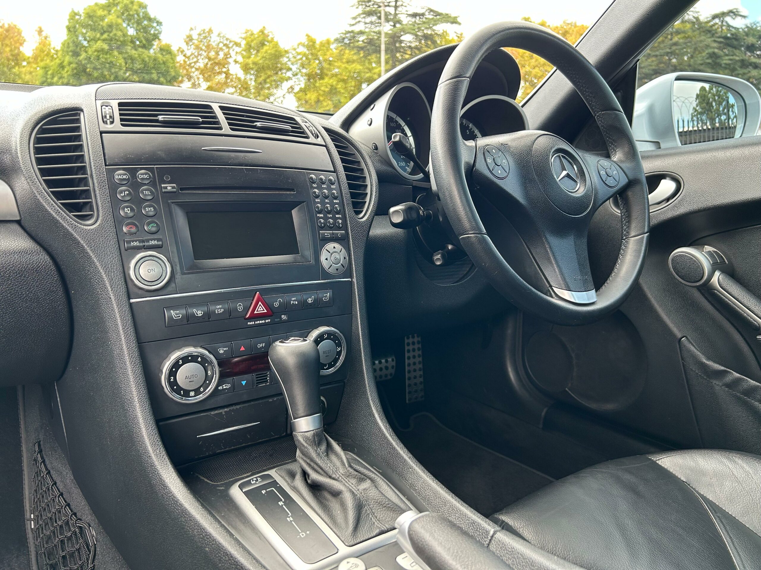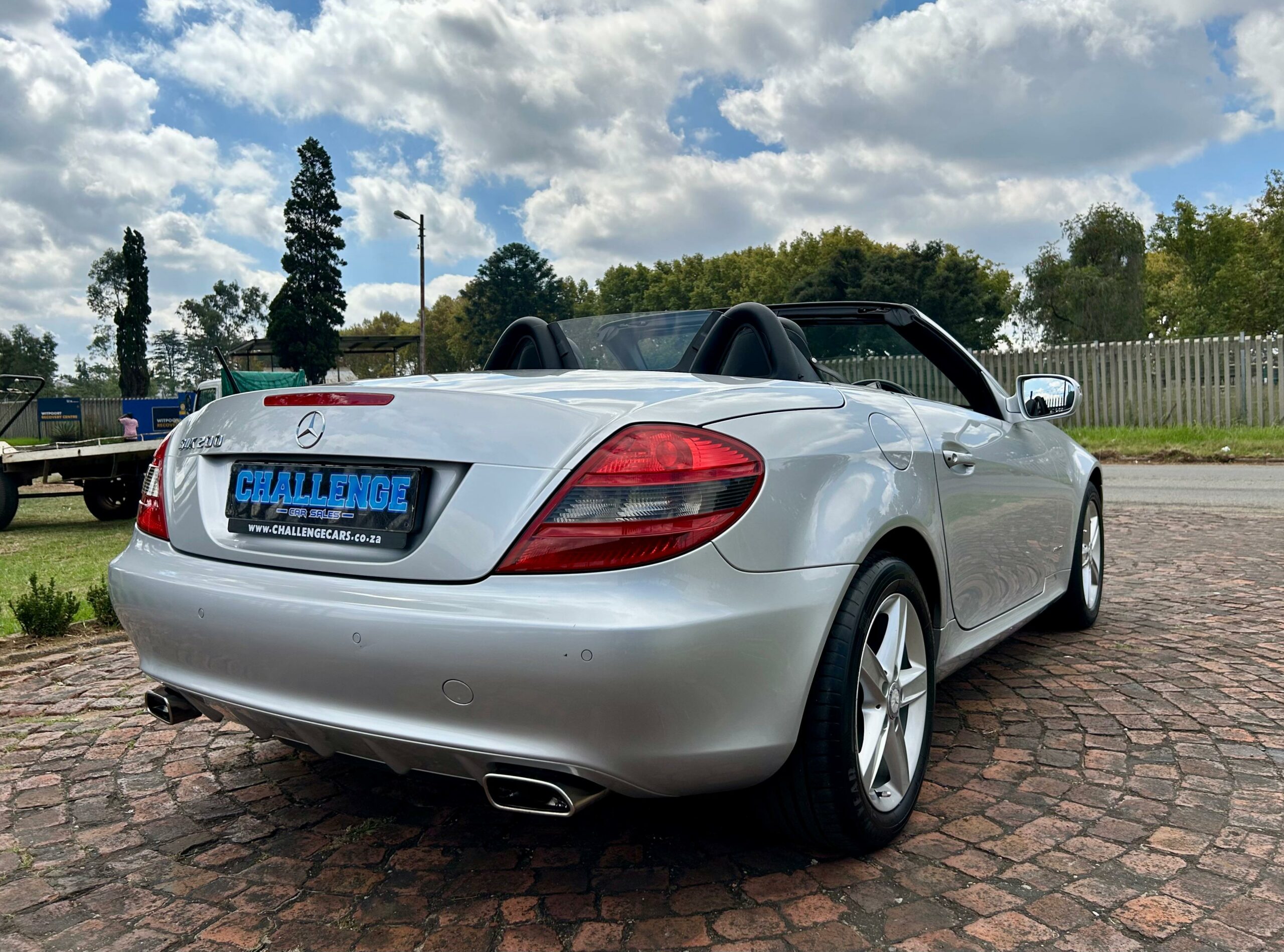 2008 Iridium Silver Mercedes-Benz SLK200 Kompressor. Loaded with ABS, airbags, aircon, electric windows, electric folding mirrors, black leather interior, heated headrests, electric heated seats, automatic xenon lights, fog lights, electric steering wheel adjustment, front and rear parking distance sensors, multi-functional power steering, paddle shift, cruise control, front loader radio with phone connectivity, central locking, service history and spare key.