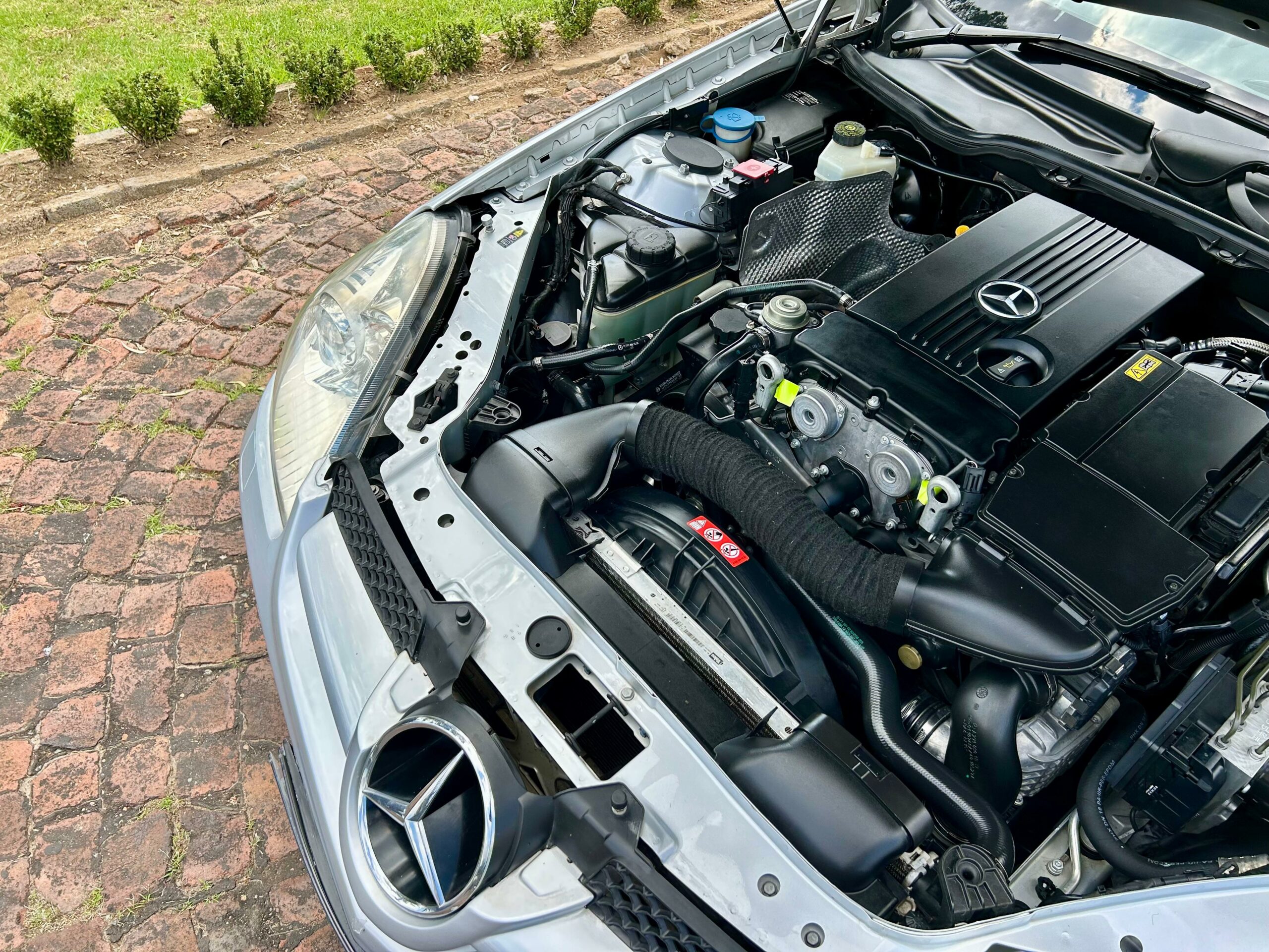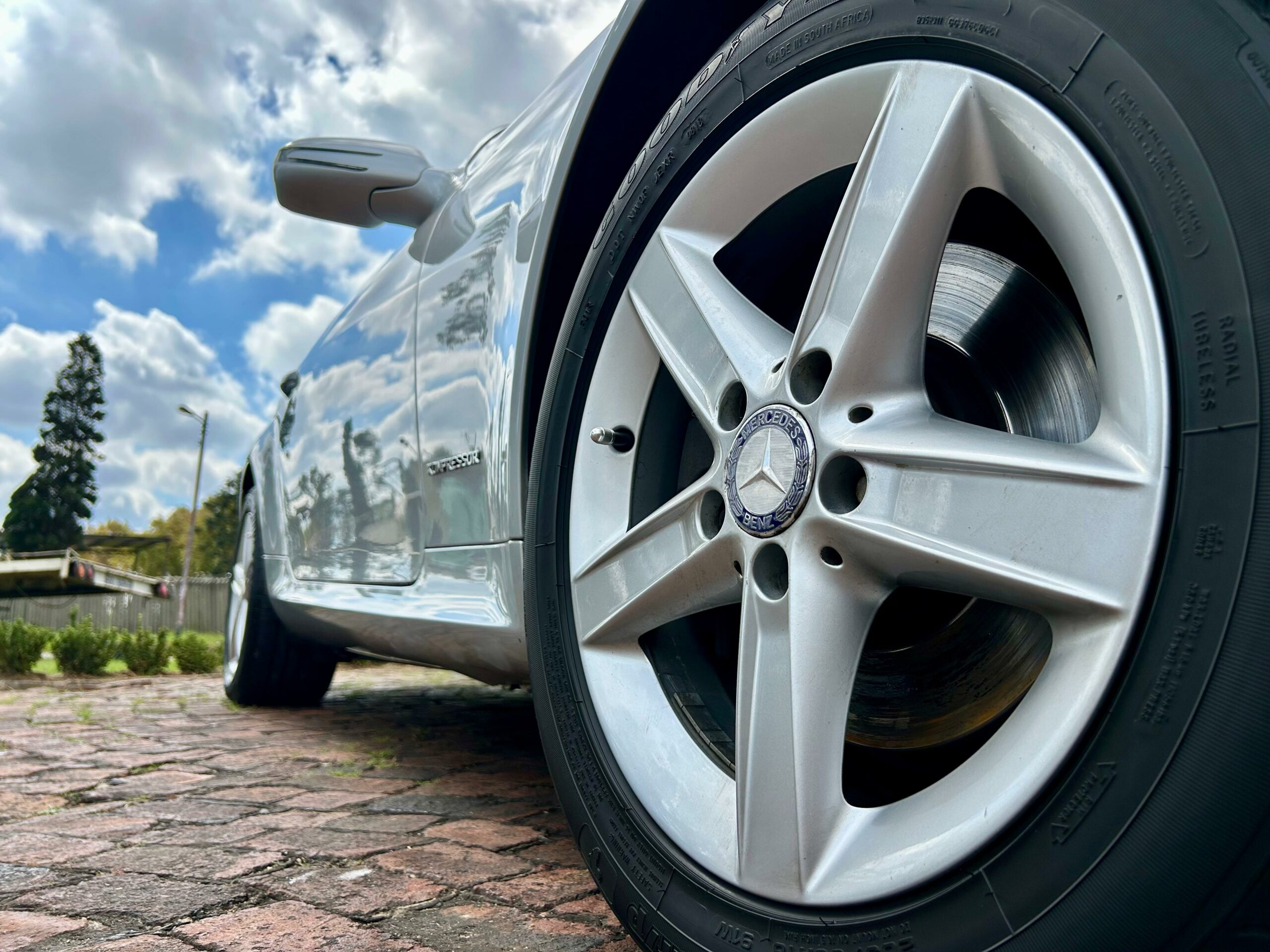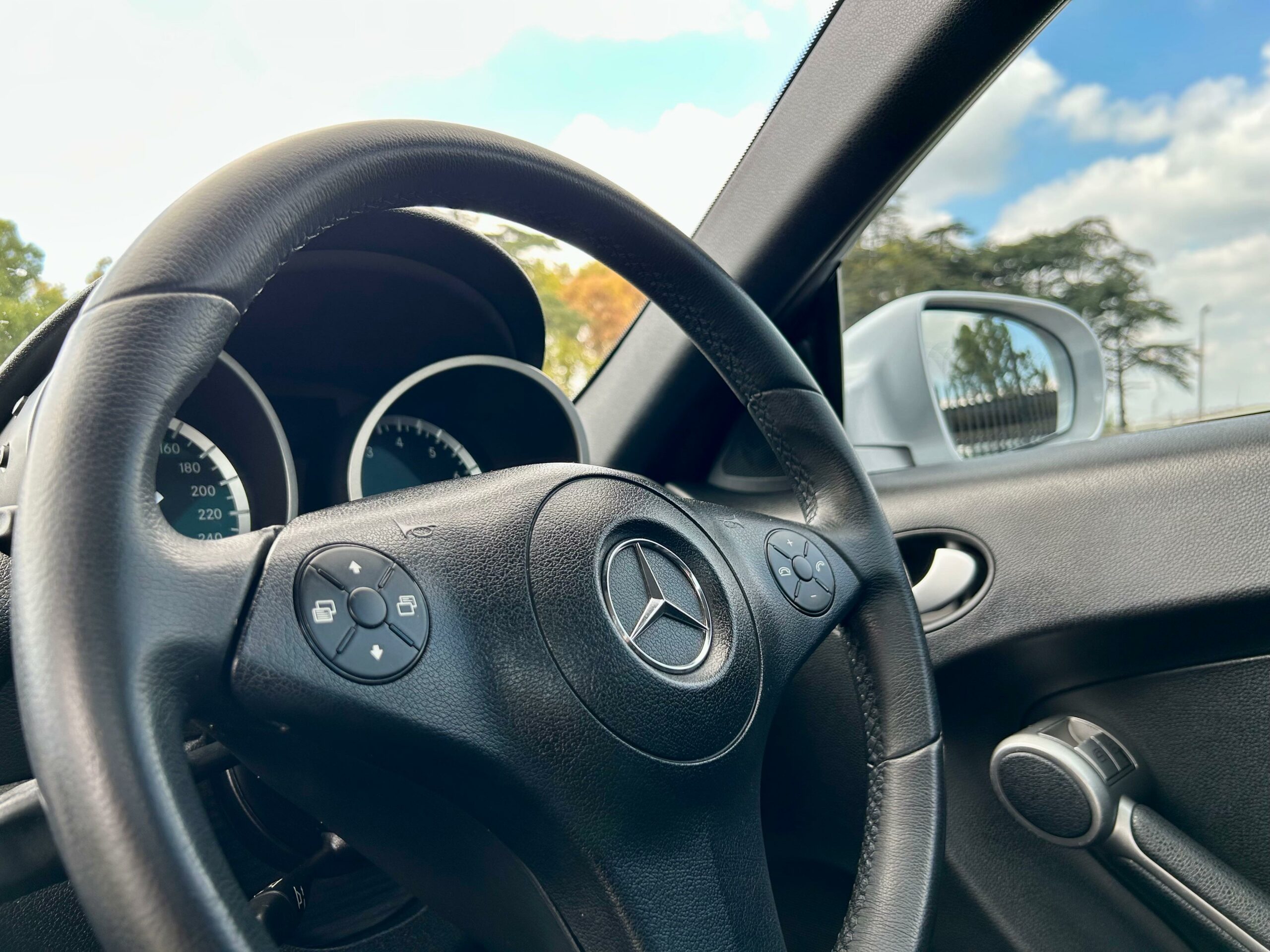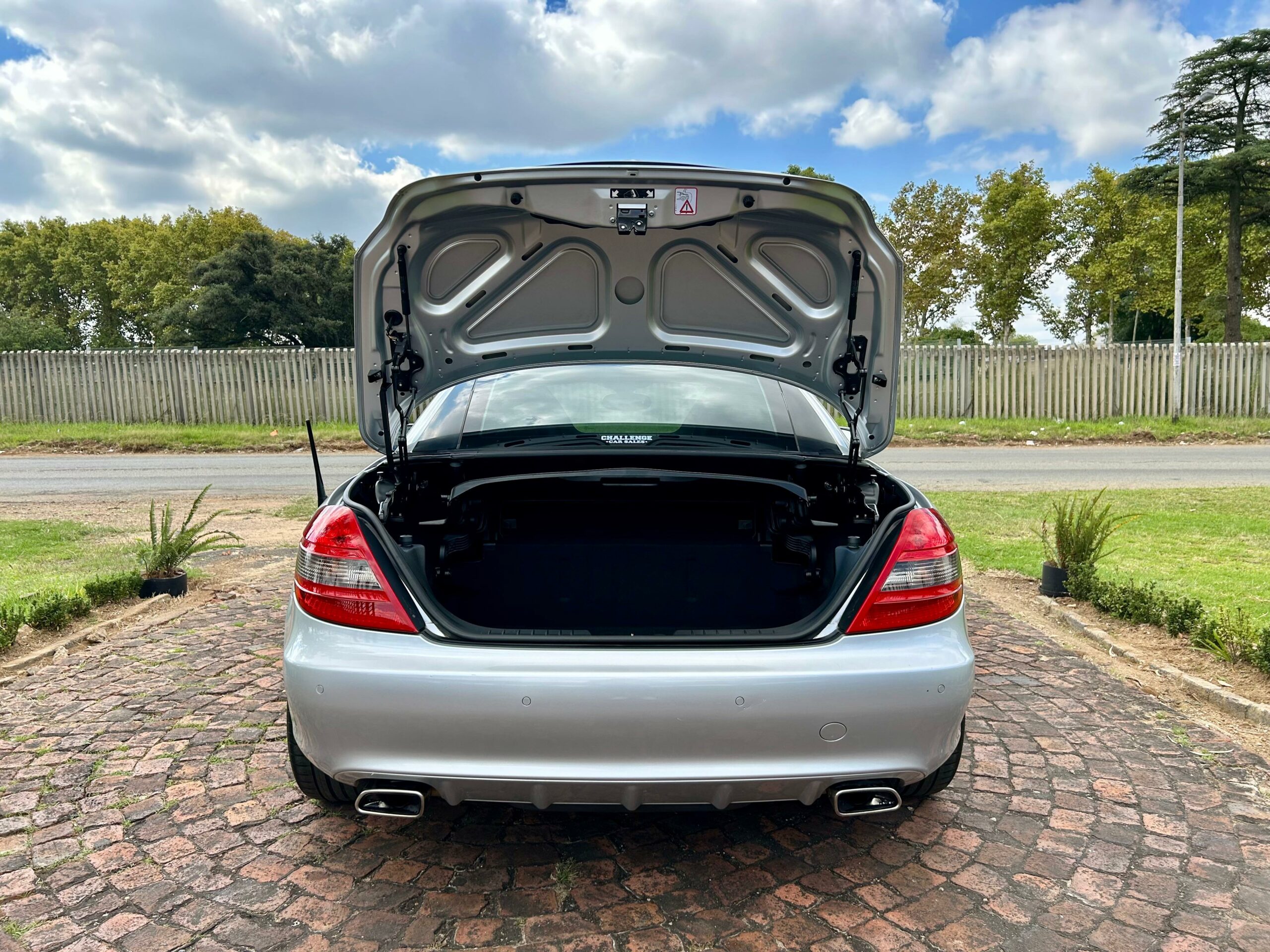 2008 Iridium Silver Mercedes-Benz SLK200 Kompressor. Loaded with ABS, airbags, aircon, electric windows, electric folding mirrors, black leather interior, heated headrests, electric heated seats, automatic xenon lights, fog lights, electric steering wheel adjustment, front and rear parking distance sensors, multi-functional power steering, paddle shift, cruise control, front loader radio with phone connectivity, central locking, service history and spare key.