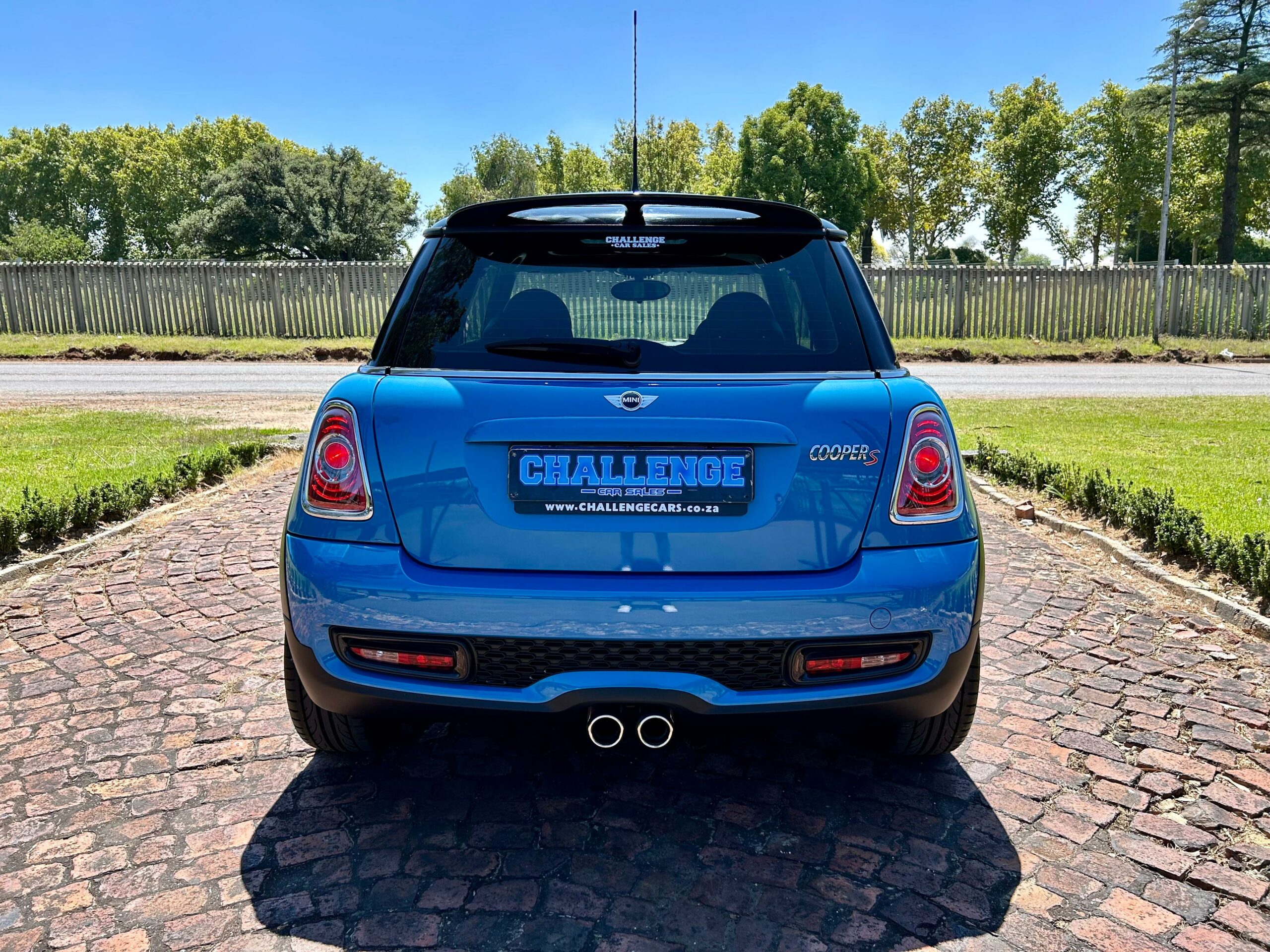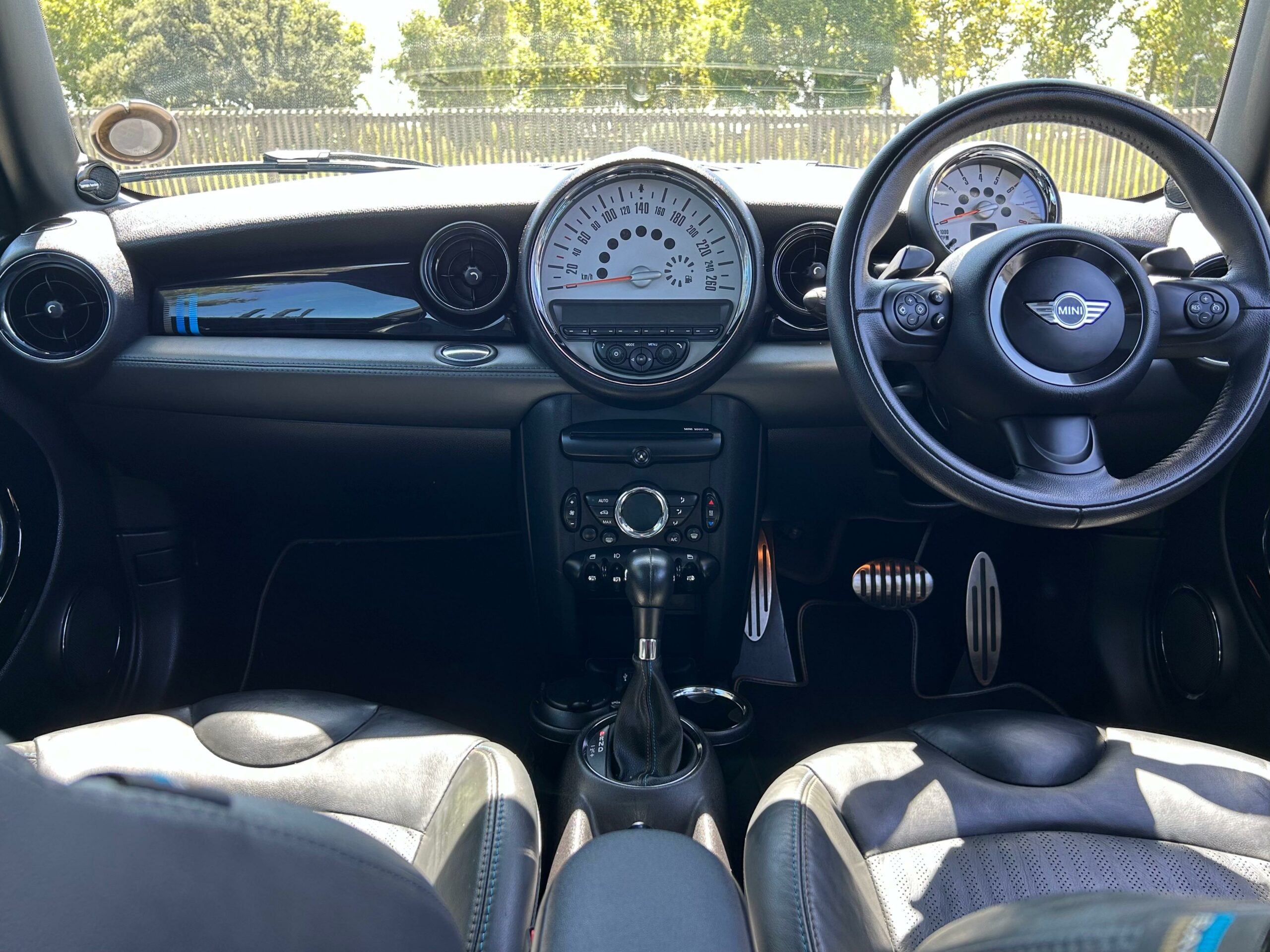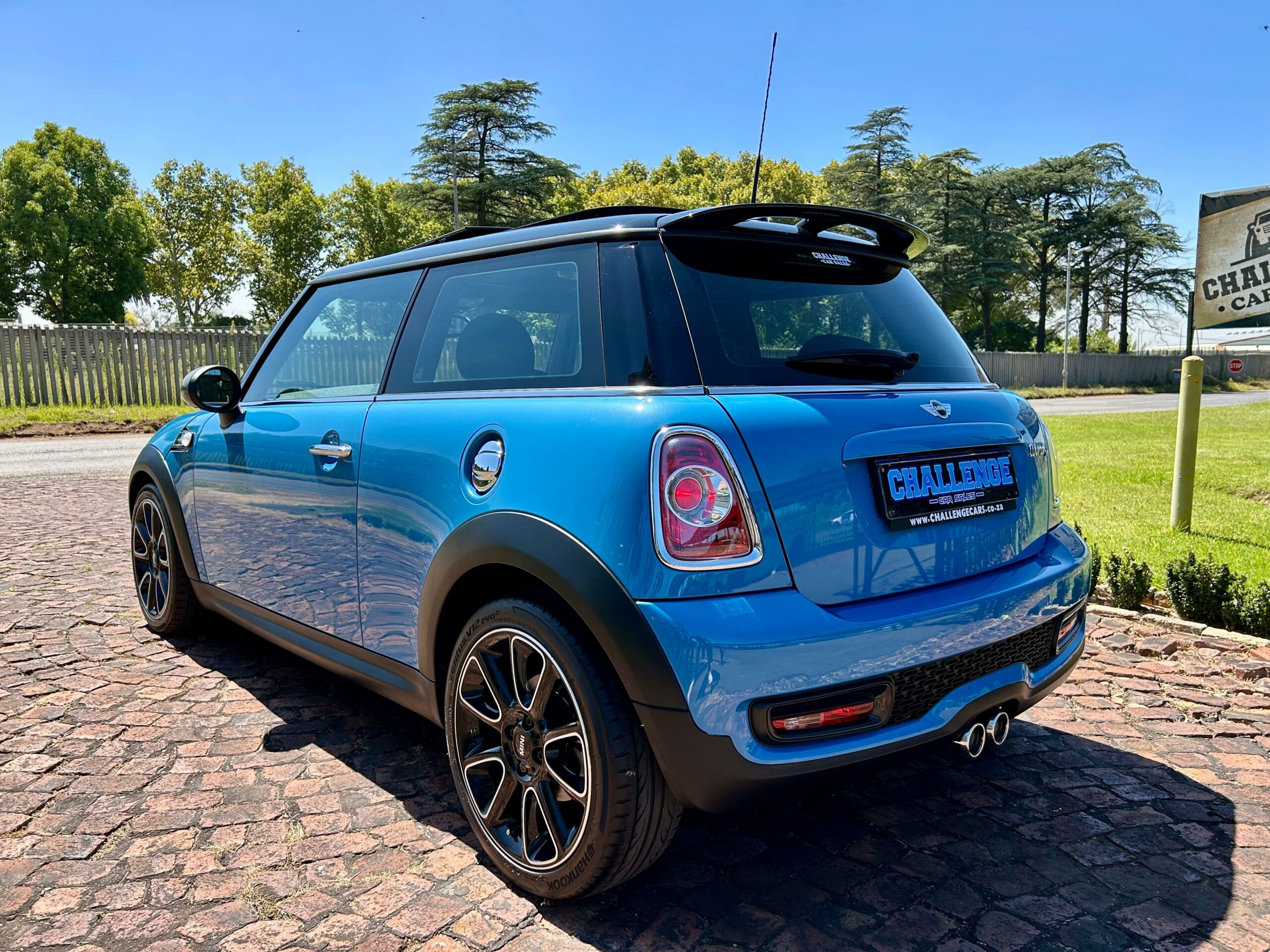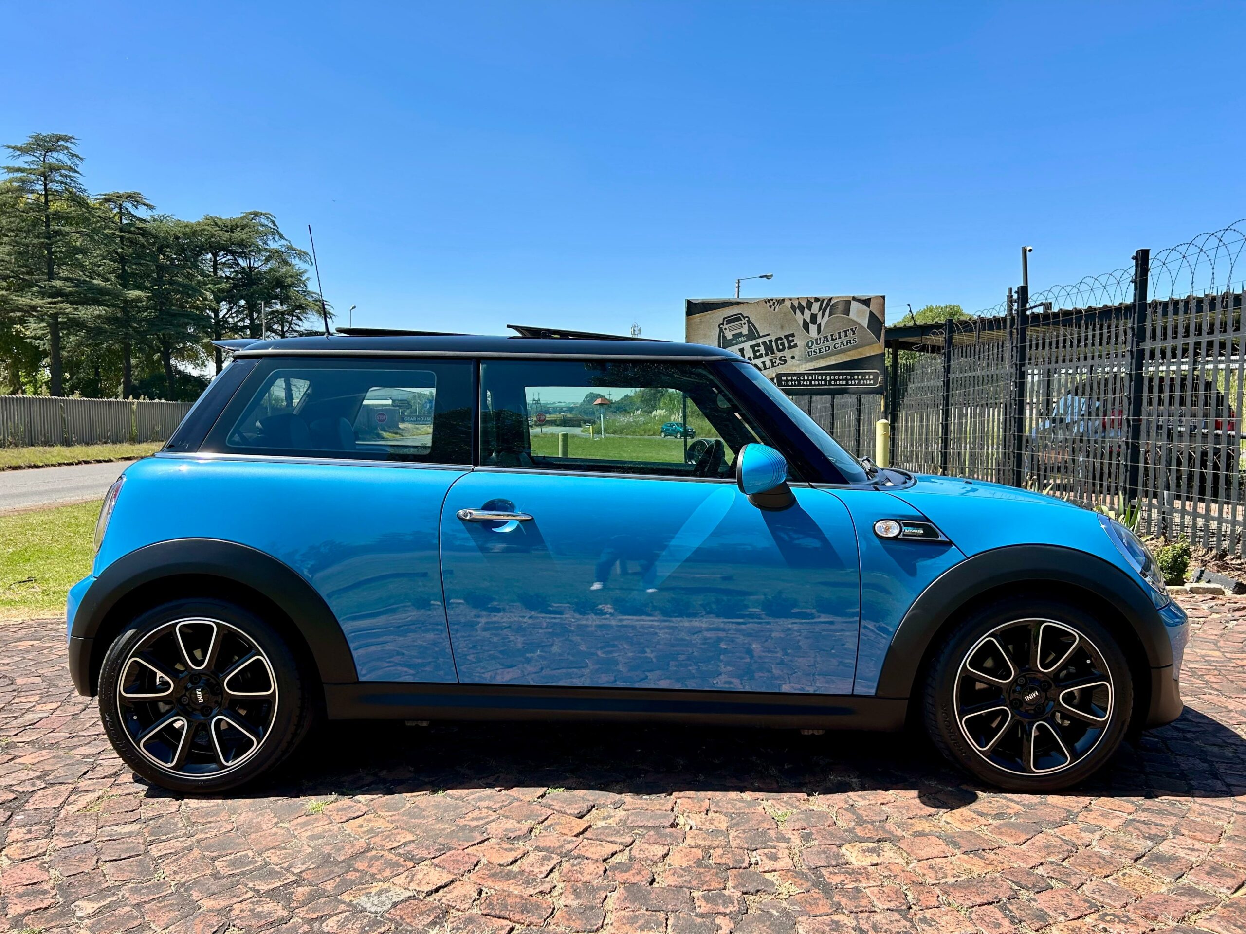 A one owner 2012 Kite blue Mini Cooper S Bayswater edition. Loaded with ABS, airbags, aircon, electric windows, electric mirrors, central locking, ambient interior lighting, Bi-Xenon headlights, fog lights, double panoramic sunroof, 17" alloy wheels, onboard computer, Harman Kardon sound system, sport driving mode, cruise control, multi-functional power steering with paddle shift, stop/start button, front loader radio with AUX and USB, service history and spare key.