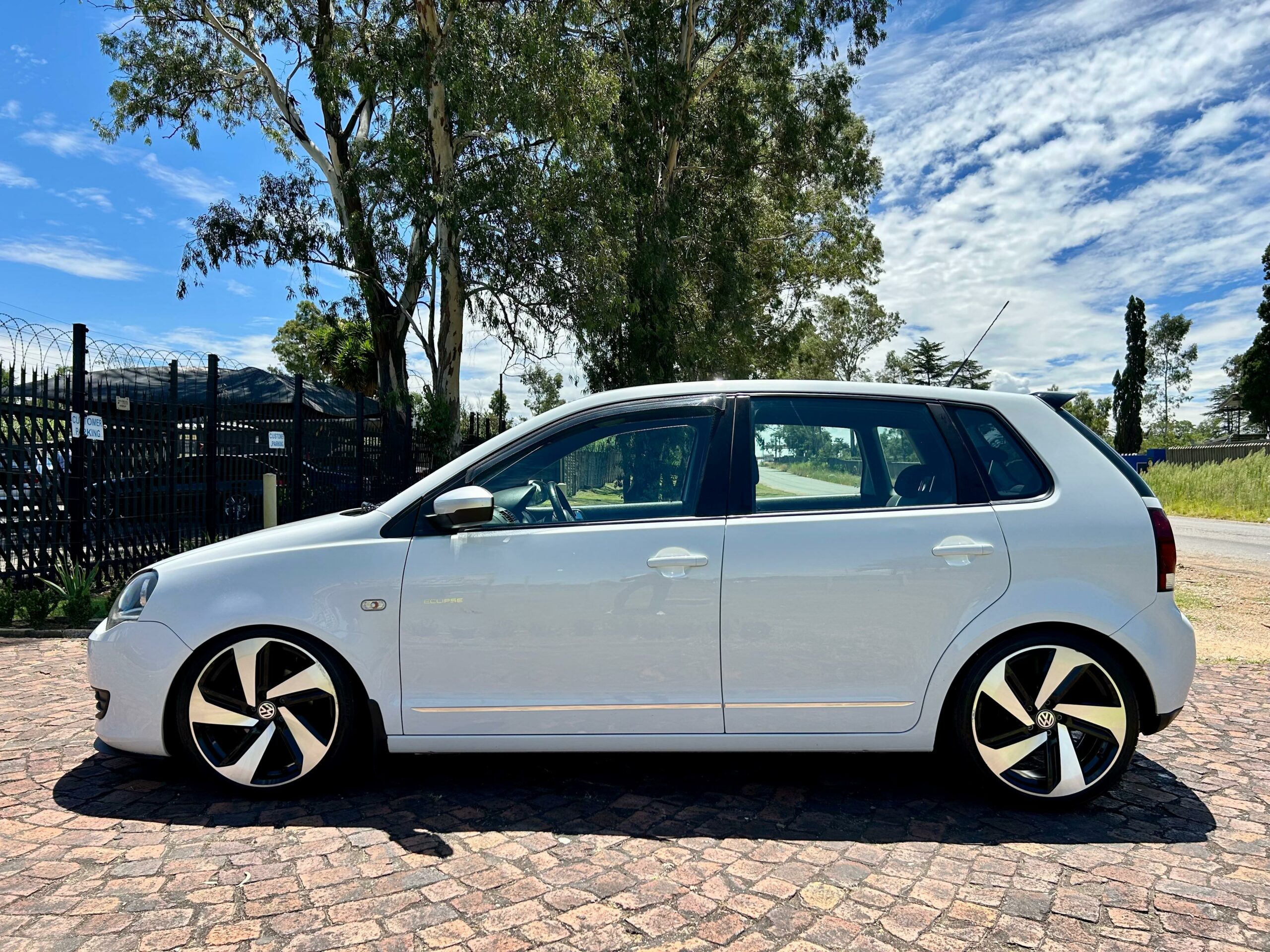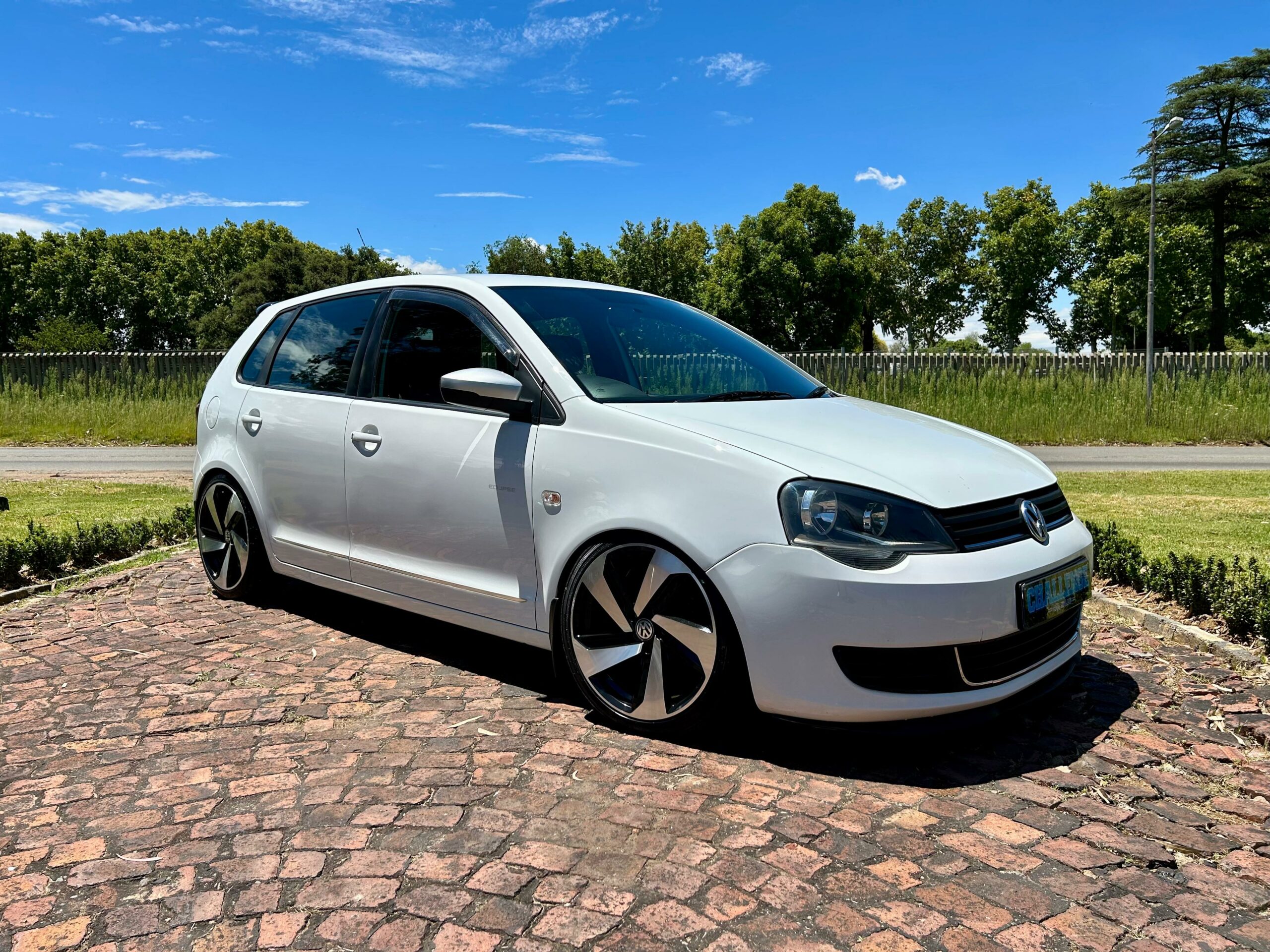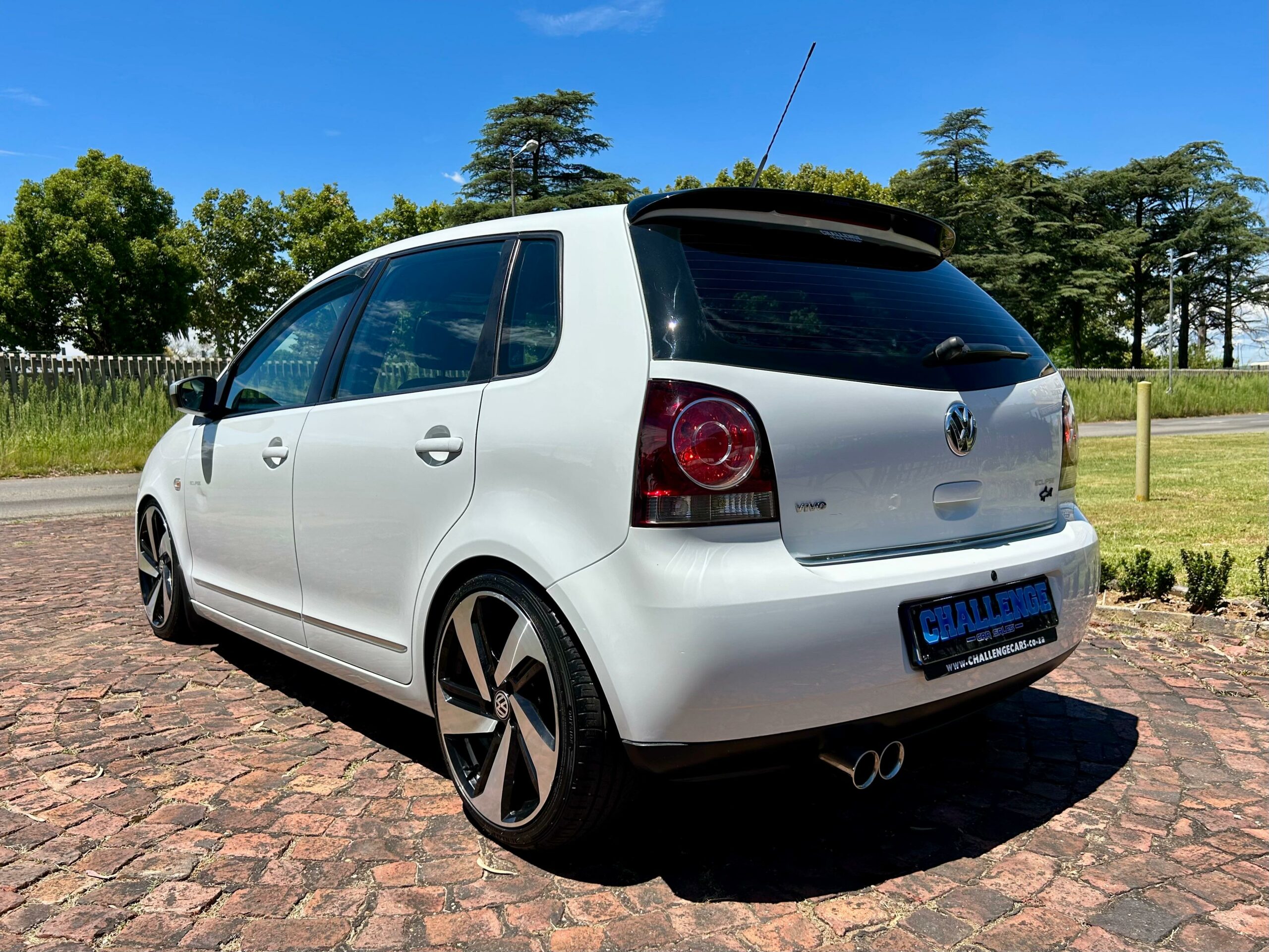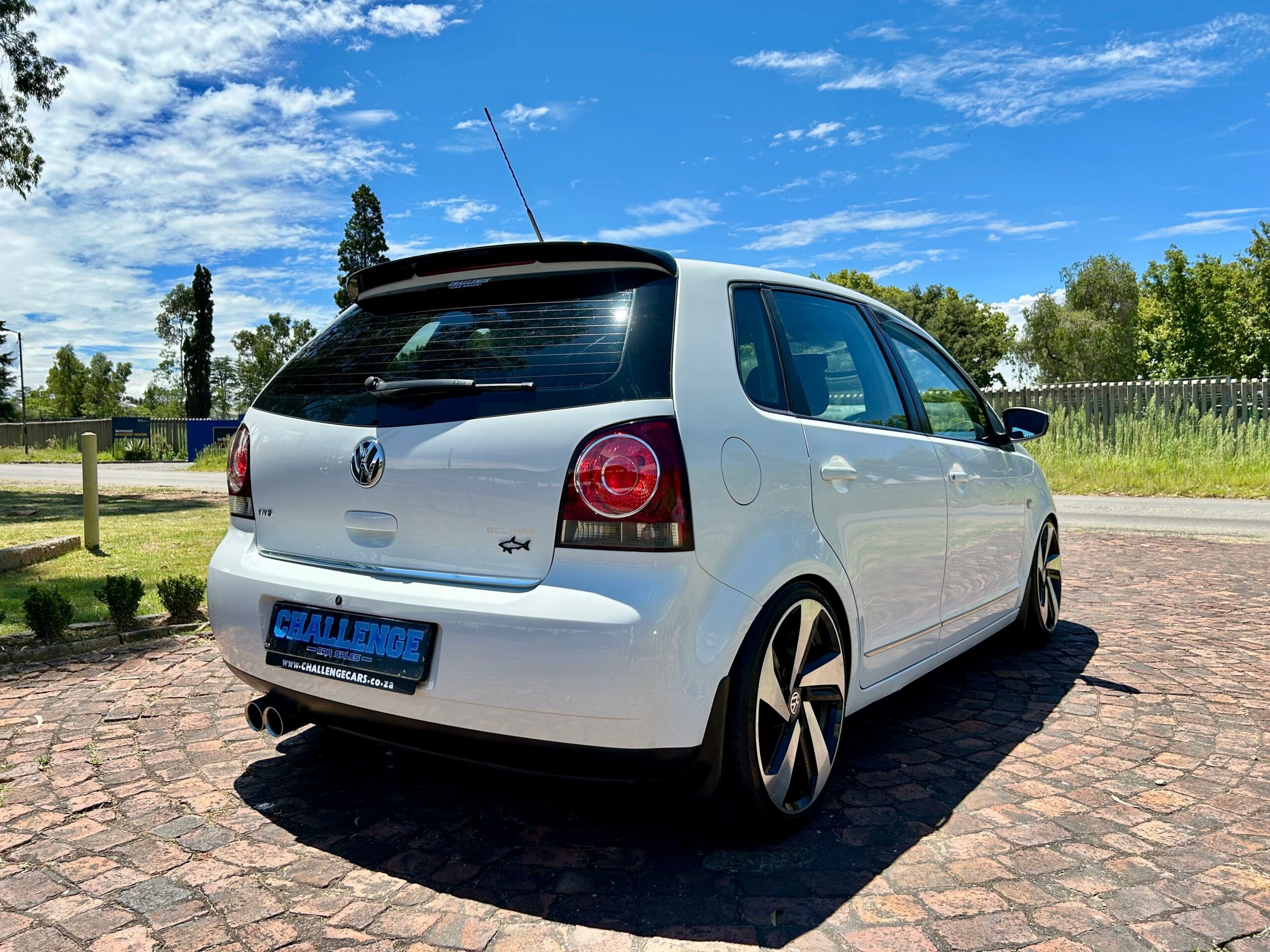 2015 pure white Volkswagen Polo Vivo Eclipse. Loaded with ABS, airbags, aircon, front electric windows, power steering, central locking, two tone interior, cupra front lip, boot spoiler, coilover suspension, 17" alloy wheels, cold air intake, free-flow exhaust system, mudflaps, SONY front loader radio with AUX and USB inputs and service history.